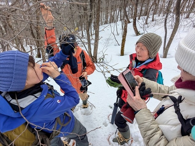 自然観察を楽しむ雪上トレッキングです。山用カンジキを使用し、地形図・コンパスの使い方も学べます。